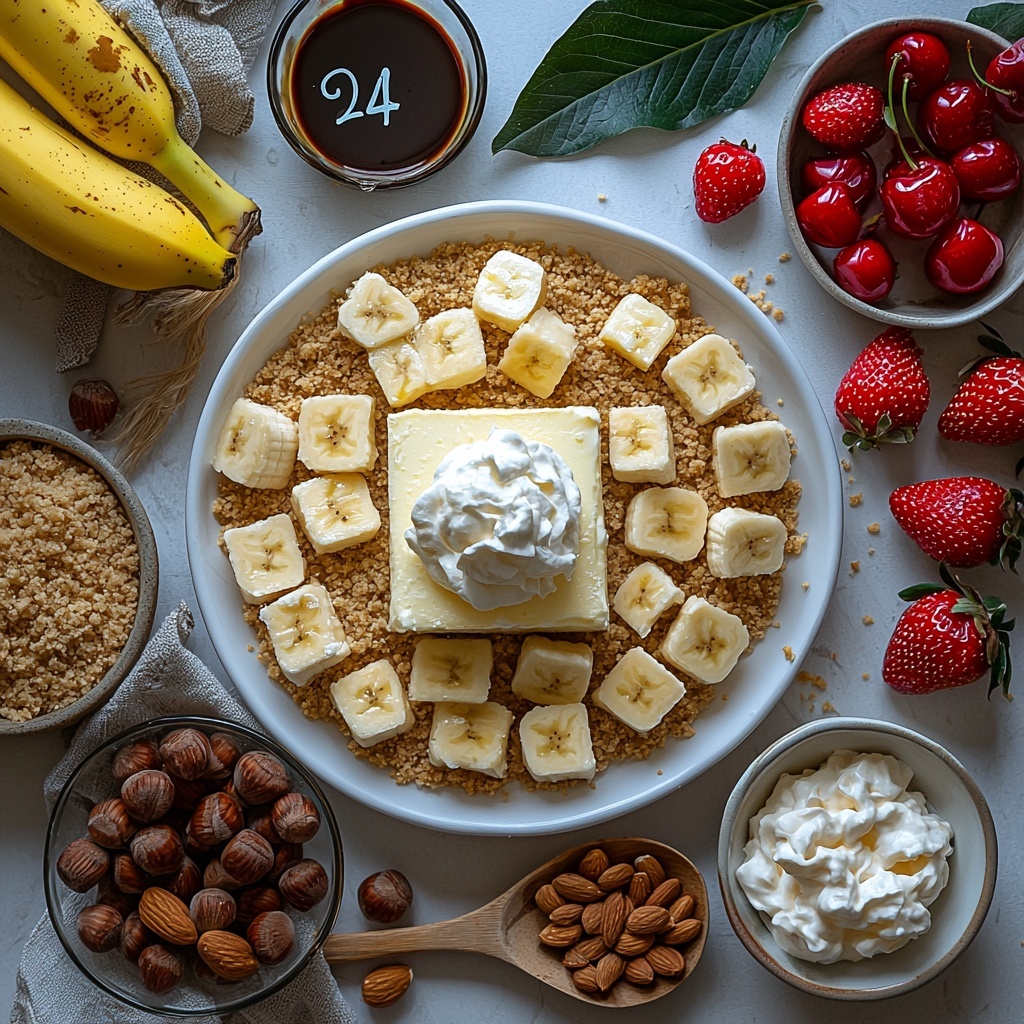 The magic of this Banana Split Cheesecakes Recipe lies in its simple, wholesome ingredients. Each one is carefully chosen to build layers of texture and flavor—from the crisp, buttery graham cracker crust to the silky banana-cream filling, and of course, the colorful toppings that bring it all together.