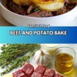 This comforting Beef and Potato Bake features tender chunks of beef chuck roast layered with thinly sliced Yukon Gold potatoes, infused with fresh herbs and slow-baked to golden perfection. A rich, savory dish perfect for a cozy family meal.