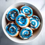 Cookie Monster Cinnamon Rolls are a fun and delicious twist on classic cinnamon rolls, featuring a vibrant blue dough and a cookie-studded filling. These sweet rolls combine the flavors of cinnamon, brown sugar, chocolate sandwich cookies, and mini chocolate chips, topped with a creamy cream cheese icing and extra cookie crumbles for a delightful treat.