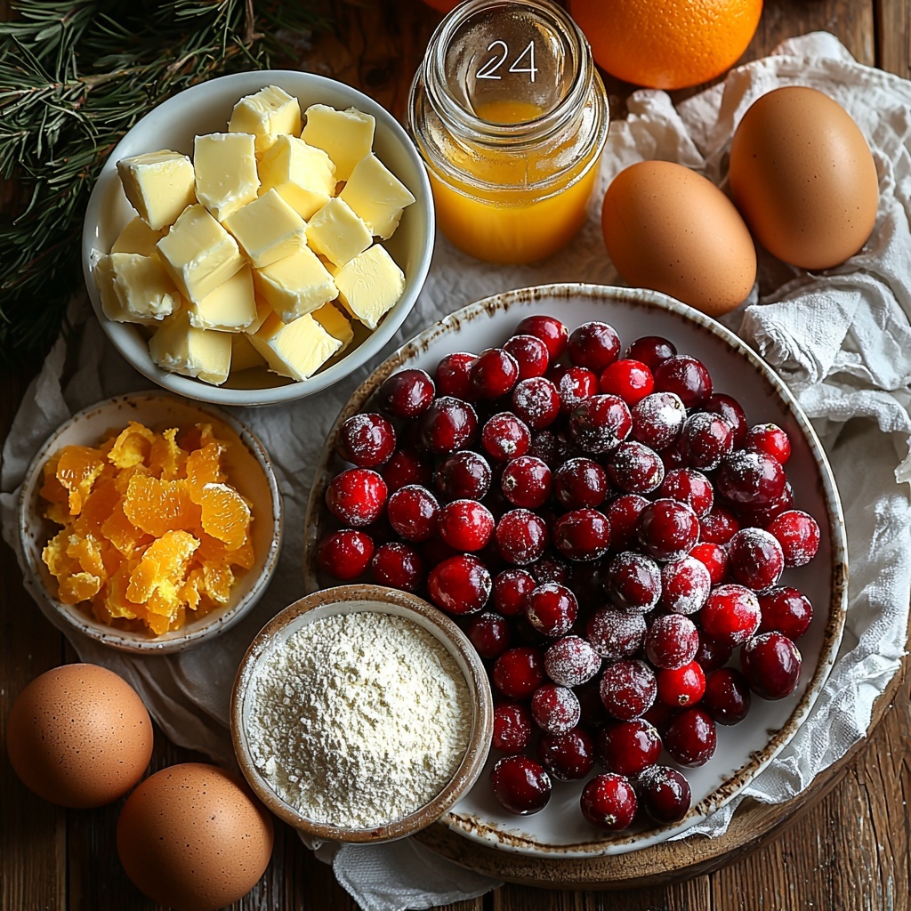 Gathering the ingredients for this Cranberry Orange Mini Loaves Recipe is straightforward but crucial to achieving that perfect texture and vibrant flavor. Each element plays a role, from the soft butter adding richness to the burst of freshness in every cranberry.