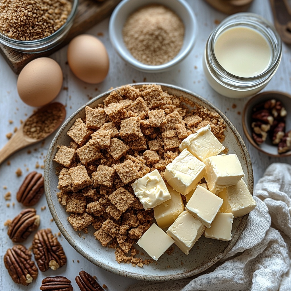 • Chopped pecans: Deliver crunch and nutty goodness, anchoring the pie-and-cheesecake fusion.