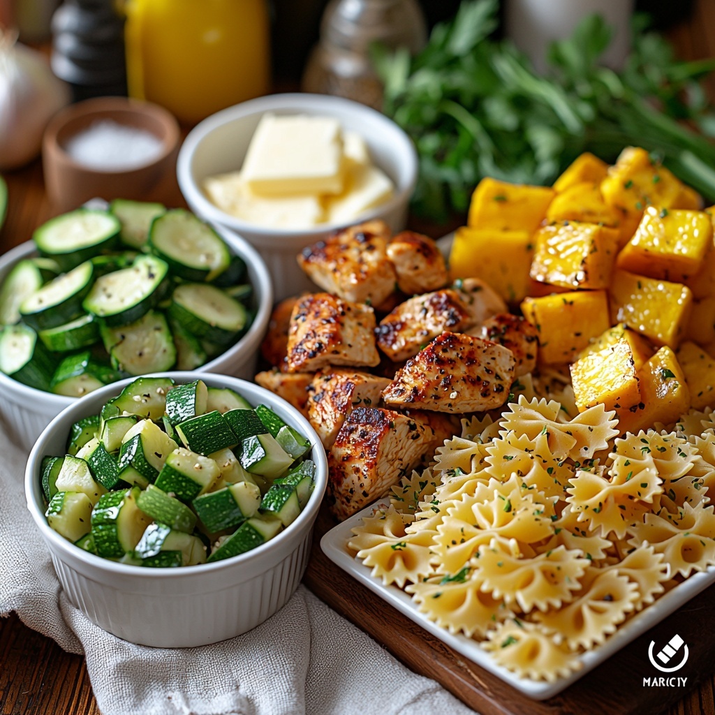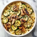 This Lemon Chicken Pasta is a vibrant and satisfying dish featuring tender seasoned chicken breasts, fresh zucchini, and yellow squash sautéed with garlic and herbs, all tossed with mini farfalle pasta in a tangy lemon butter sauce and finished with freshly grated Parmesan cheese and parsley. Ready in just 25 minutes, it’s perfect for a quick, flavorful weeknight meal.