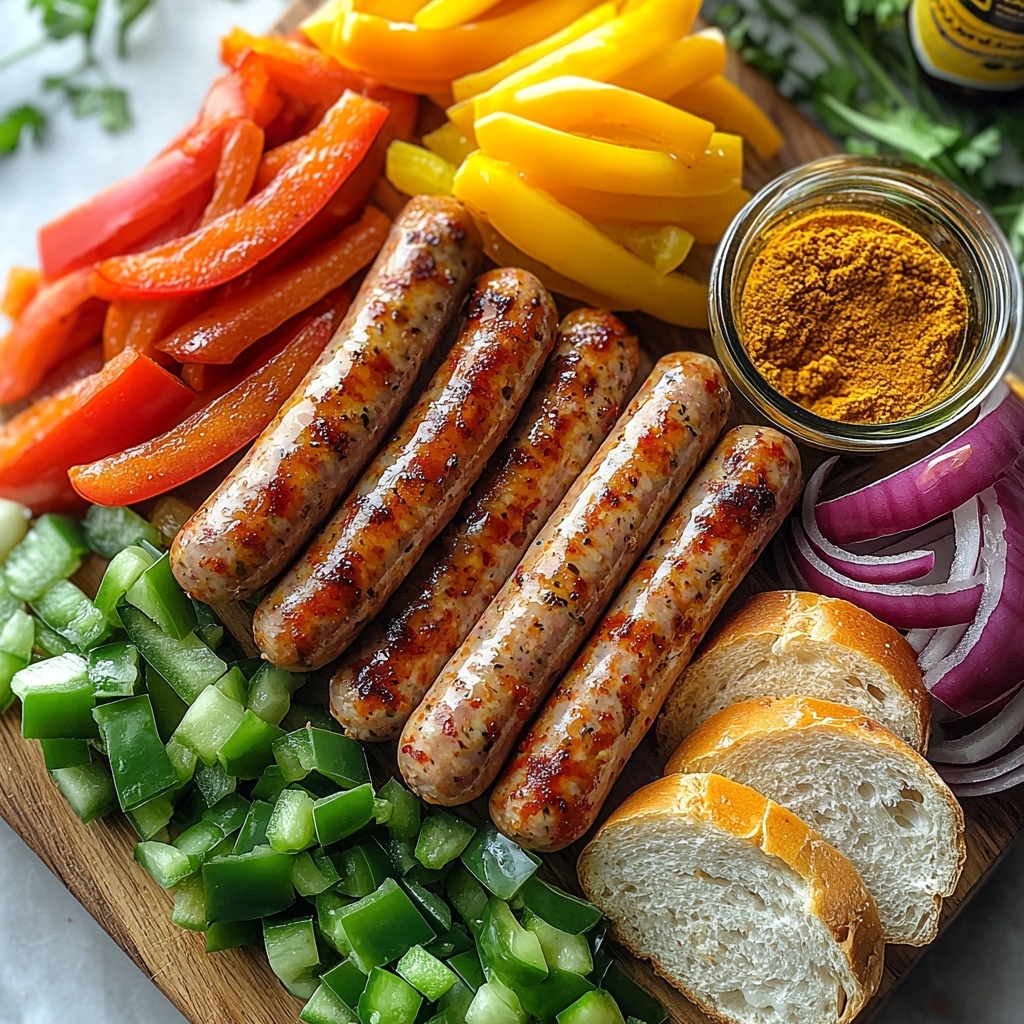 Start by heating the olive oil in a large skillet over medium-high heat. Once hot, add the beef sausage links and cook them until they’re beautifully browned and sizzling, about 5 to 6 minutes. This step is crucial to developing that rich, smoky flavor that makes this sandwich unforgettable. Once browned, remove the sausages from the skillet and set them aside – we’ll bring them back in a little while.