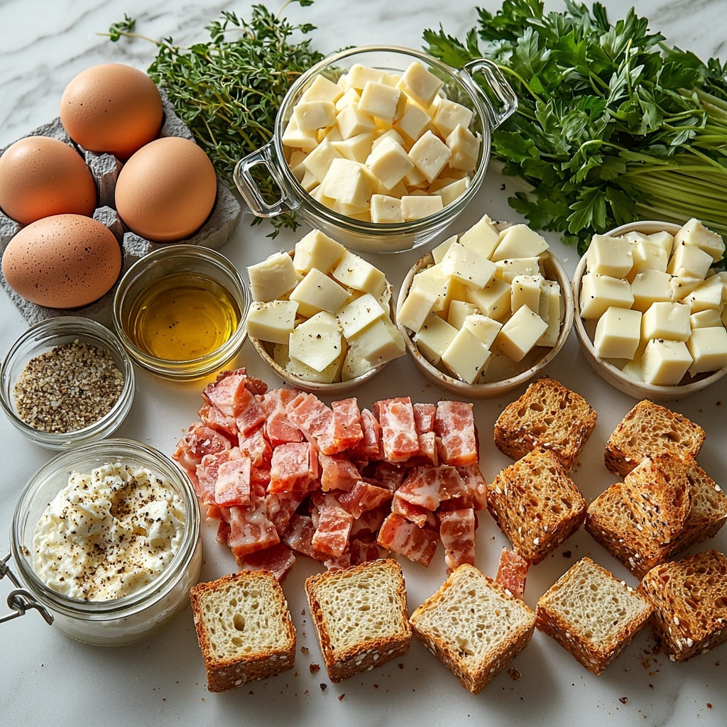 - Gruyère cheese (6 ounces, grated, divided): Melts into a decadent golden layer and infuses the pudding with nutty flavor.
