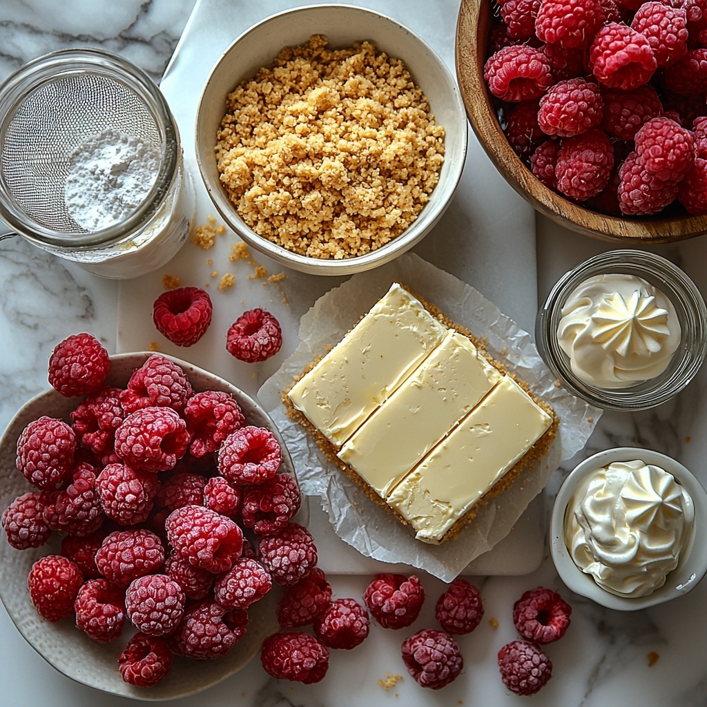 This recipe combines a handful of simple, quality ingredients that come together like a dream. Each element plays a key role: from the crumbly base that provides the perfect crunch, to the creamy, tangy lemon filling, and lastly, the fresh raspberries that add a pop of color and flavor.