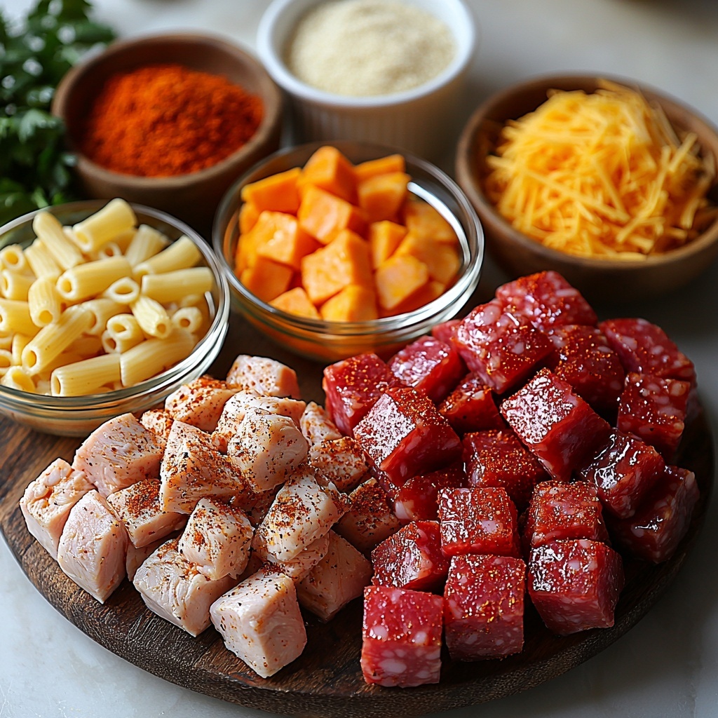 This One-Pot Creamy Spicy Cajun Chicken & Sausage Mac is a hearty, flavorful dish combining tender chicken, smoky sausage, and creamy cheese sauce with a spicy Cajun kick. Perfect for a comforting weeknight dinner, it’s made entirely in one pot for easy cleanup and packed with bold southern flavors.