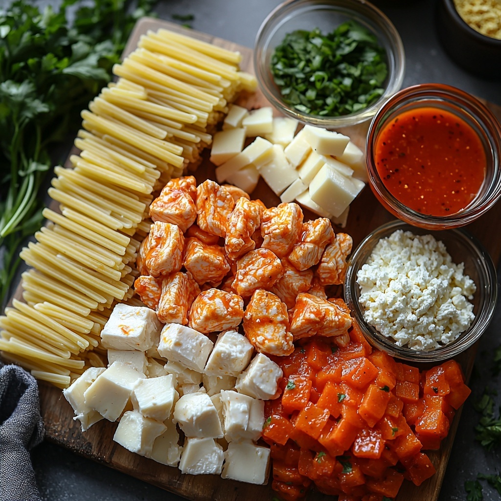 Every ingredient in this One-Skillet Spicy Buffalo Ranch Chicken Pasta Recipe plays a crucial role, keeping the preparation straightforward while packing in layers of flavor, texture, and color. From perfectly seared chicken to the rich and creamy sauce, each component elevates the dish in its own delightful way.