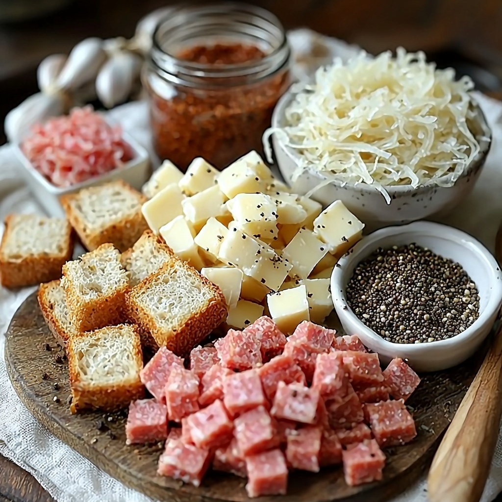 - Light rye bread (6-8 slices, cubed): Provides a sturdy, flavorful foundation that soaks up all the sauce and seasonings beautifully.