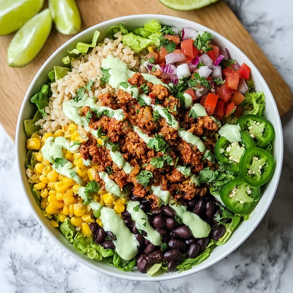 Gather your ingredients and start assembling the bowls by placing a generous scoop of cilantro lime rice at the bottom. Top this warmly scented base with the savory turkey filling, then layer on crisp chopped romaine for a refreshing crunch. Add a hearty spoonful of black beans and finish with creamy avocado slices. If you want to personalize your bowl, feel free to toss on extra toppings like shredded cheese, salsa, or a dollop of sour cream for added richness.