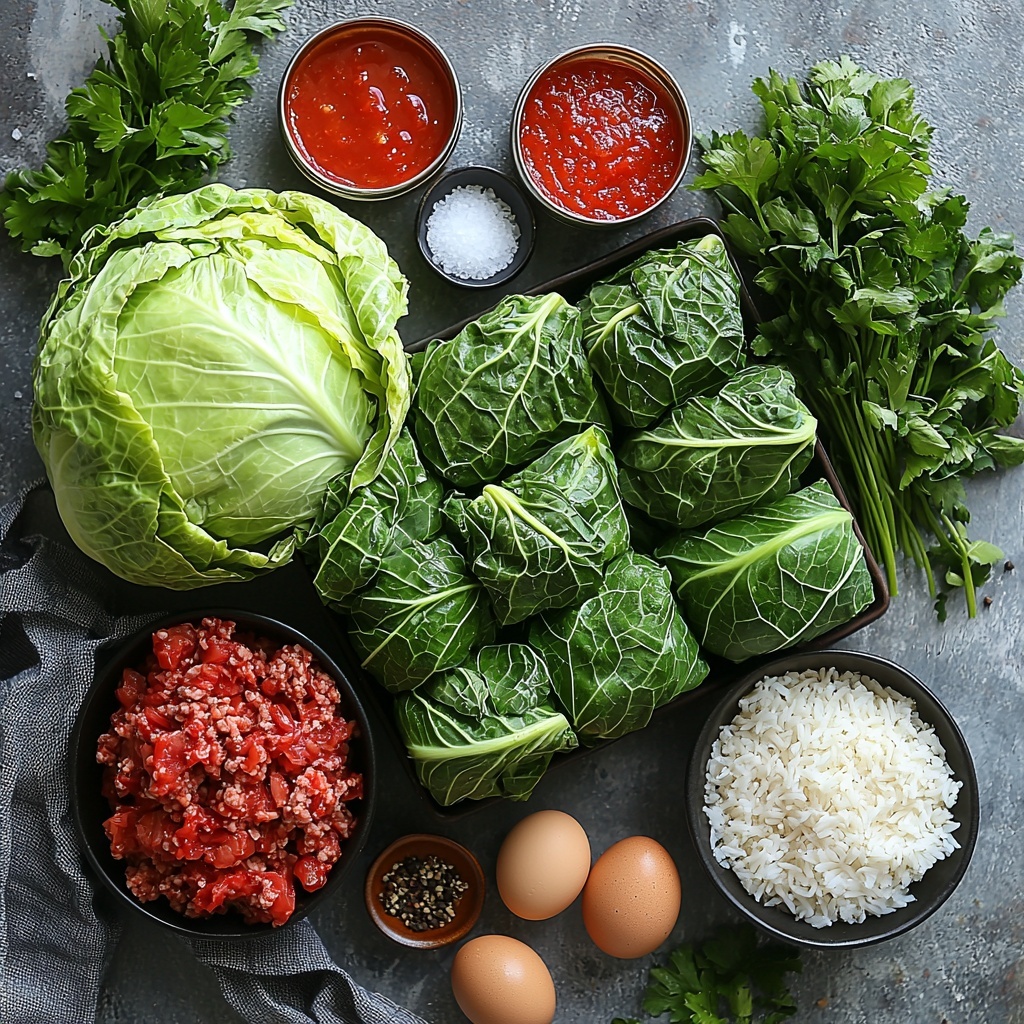 This recipe relies on straightforward, wholesome ingredients that work together beautifully to create a satisfying dish. Every element plays a special role, from the tender cabbage leaves that cradle the filling, to the flavorful tomato sauce that ties everything together with a comforting richness.